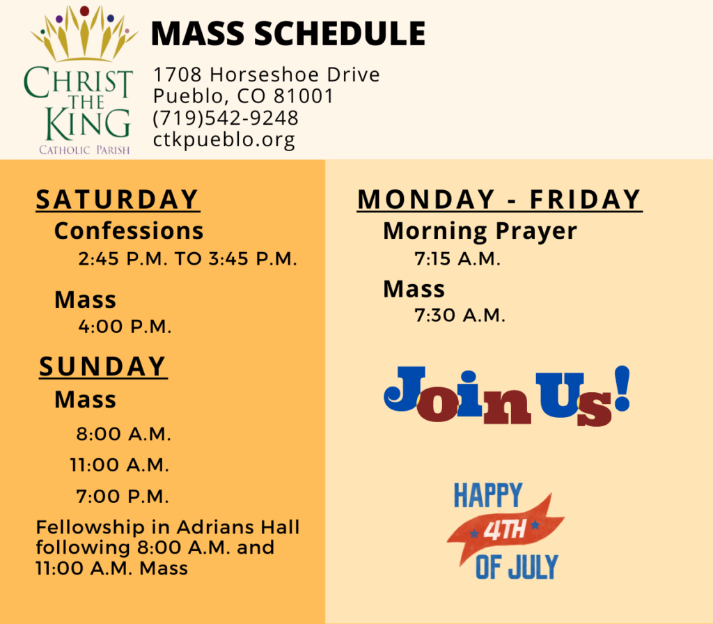 Search for Catholic Masses and opportunities for Confession Adoration and Rosary recitation. Saturday Confessions 200 pm. We continue to ask those who are not fully vaccinated to please wear a face mask.